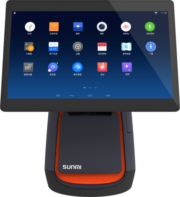 T2 - Touchsystem, 15.6" Widescreen Display + 10" Kundenanzeige, Android 7.1, 80mm Thermobondrucker 2GB RAM, 16GB ROM Die T2 von Sunmi ist ein All-In-One Touchsystem auf Android 7.1 Basis mit Qualcomm Snapdragon Octa-Core CPU, 15.6" Widescreen Display mit FullHD Aufl?sung sowie integriertem Seiko Thermobondrucker f?r 80mm Papierrollen. Der Speicher der T2 betr?gt 2GB RAM sowie 16GB ROM. Als Touchscreen kommt ein vom Smartphone bekannter kapazitiver Multi-Touchscreen zum Einsatz. Zur kabellosen Anbindung stehen sowohl Wireless LAN im Dual-Band Betrieb, Bluetooth 4.0 zur Verf?gung. Integrierte Lautsprecher stehen ebenso zur Verf?gung wie auch reichlich USB-Anschl?sse, ein serieller Anschluss sowie Anschl?sse f?r Kassenlade oder Netzwerk. Der Seiko 80mm Bondrucker druckt mit einer Geschwindigkeit von bis zu 200mm / Sekunde, ist kompatibel zu den handels?blichen Bonrollen mit 80mm Breite sowie 80mm Au?endurchmesser und besitzt eine automatische Abschneidefunktion. Besonderheiten: - Android 7.1 - Quad-Core CPU - Integrierter 80mm Bondrucker Anwendungsbereiche: - Einzelhandel - Gastronomie Technische Spezifikationen: - Betriebssystem: Android 7.1 - Prozessor: Qualcomm Snapdragon Octa-core - Display: 15.6", 1920 x 1080 - 2. Display: 10.1", 1024 x 600 - Touchscreen: Kapazitiv Multi-Touch - RAM: 2 GB - ROM: 16 GB - Drucker -- Hersteller: Seiko -- Papierbreite: 80mm -- Druckgeschwindigkeit: 200mm / Sekunde -- Rollendurchmesser: max. 80mm -- Cutter: Automatisch, integriert - Speicherkarte: micro SD, max. 64 GB - Wi-Fi: 802.11 a/b/g/n 2.4GHz/5GHz - Bluetooth: 4.0 - Anschl?sse: 5 x USB, 1 x RJ11 (Seriell), 1 x RJ12 (Kassenlade), 1 x RJ45 LAN, 1x Audio, 1 x Power, 1 x micro-USB debug - Ma?e (B x H x T): 407mm x 382mm x 232mm